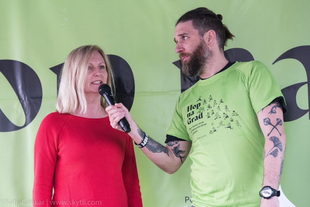 »Drugi dobrodelni tek Hop na Grad je odlično uspel. Kljub bolj čemernim vremenskim napovedim preko tedna za nedeljo je bilo vreme dejansko idealno za tek, saj ni bilo ne prevroče ne premrzlo, imeli smo celo nekaj sonca. Teka se je udeležilo več kot 600 tekačev vseh starosti. Vzdušje na dogodku je bilo zelo živahno in prijetno, za kar sta skrbela Žiga in Uroš z Radia Antena, ki je oddajal z mesta dogodka. Tudi teki so potekali brez večjih zapletov, le pri najmlajših je bilo zaradi izrazite zagnanosti koristno, da je bil start pokrit s preprogo, da hujšega od nekaj solz ni bilo. Tekov na 2 in 6 km se je udeležilo več kot 400 tekačev, zmagovalci pa so bili res hitri. Z izkupičkom 18.800 evrov, ki bodo podarjeni Ustanovi za Pediatrično kliniko, smo zelo zadovoljni, saj nam bo uspelo kupiti napravo za merjenje zgradbe telesa, ki jo bodo s pridom uporabljali na nefrološkem oddelku Pediatrične klinike za bolnike s kronično ledvično odpovedjo,« sta povedala doc. dr. Damjan Osredkar, predstojnik Kliničnega oddelka za otroško, mladostniško in razvojno nevrologijo na Pediatrični kliniki in zdravnica, dr. Nino Battelino s Kliničnega oddelka za nefrologijo na Pediatrični kliniki.«